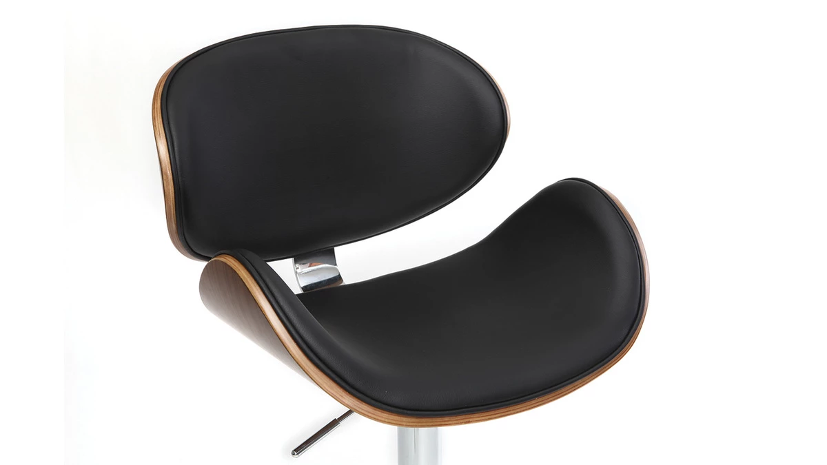 Allure extrêment enveloppante pour le tabouret de bar WALNUT ! Son assise et son dossier en polyuréthane noir, très faciles d’entretien, contrastent agréablement avec sa structure en bois cintré finition noyer qui lui assure un look vintage très tendance.