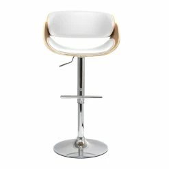 Son design a été travaillé pour faire de ce tabouret une assise sobre et originale, facile à intégrer dans son intérieur. Le mélange entre un siège en polyuréthane blanc, une structure en bois clair cintré et un piétement chromé rend unique ce tabouret haut. Grâce à ses lignes courbes et la finesse de son design, cette assise apportera une touche de modernité dans une cuisine, autour d’un îlot central, ou dans une pièce à vivre associée à une table haute ou un comptoir.