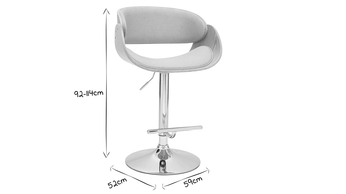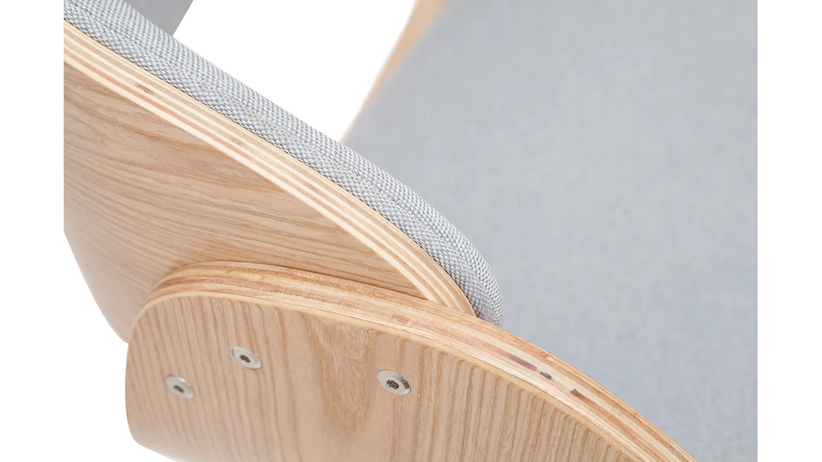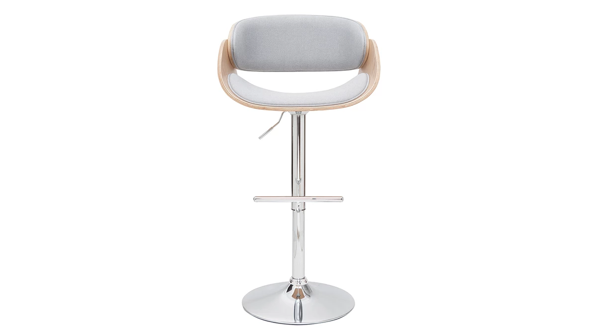 Tabouret De Bar Design Réglable En Tissu Gris Et Bois Clair BENT