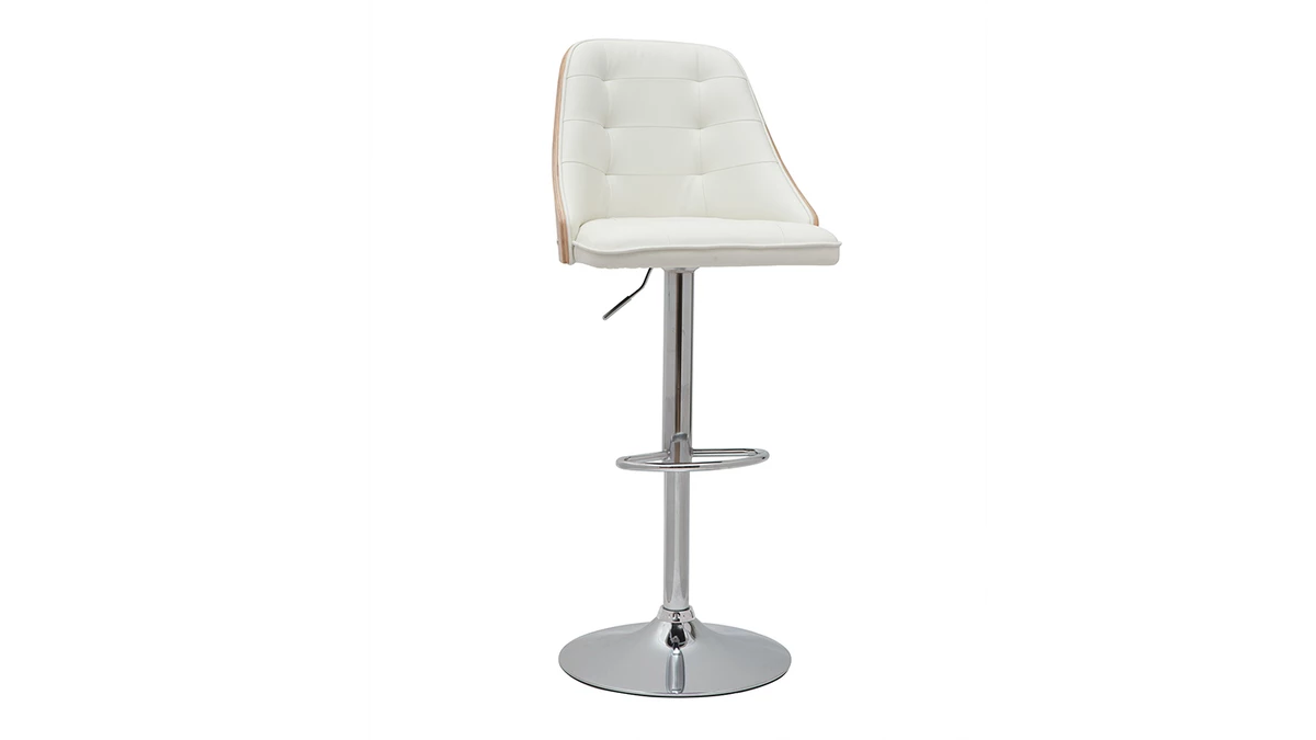 Polyuréthane blanc, bois clair et acier chromé s’harmonisent pour offrir un tabouret de bar moderne et tendance. Un mix & match de matières totalement dans l’air du temps ! On affectionne tout particulièrement le joli travail de capitonnage sur le dossier de ce tabouret. Pour un effet cocon, l’assise a été travaillée avec un revêtement capitonné en polyuréthane. Ce matériau est apprécié pour son raffinement et sa facilité d’entretien. Mix de matières naturelles et tendance, le tabouret de bar FLUFFY est une belle pièce de mobilier design.