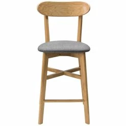 Une jolie structure avec un dossier en contreplaqué courbé ; un piètement en chêne massif élégant ; des lignes tout en douceur… pas de doute : le tabouret de bar DOVE s’inscrit dans la lignée des chaises bistrot avec brio. Sa superbe allure rétro s’exprime loin des effets de mode pour un intérieur hors du temps. Avec son assise rembourrée et son dossier incurvé, ce tabouret de bar vintage offre un excellent confort. L’assise est habillée d’un joli revêtement en tissu 100% polyester gris. Il se marie parfaitement avec le bois clair tout en facilitant l’entretien de votre chaise de bar. L’ensemble de la structure est recouverte d’un vernis transparent afin de nourrir et protéger le bois.