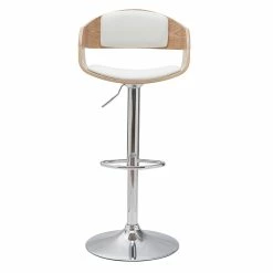 Tabourets De Bar Design Réglables En Polyuréthane Blanc Et Bois Clair (lot De 2) EUSTACHE