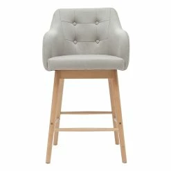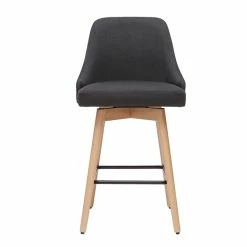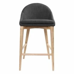 Tabourets De Bar Scandinaves En Tissu Gris Foncé Et Bois Hêtre Massif H65 Cm (lot De 2) HASTA