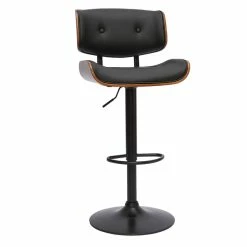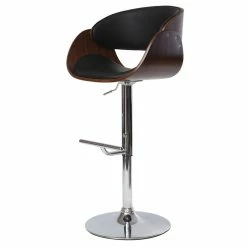 Tabouret De Bar Design Réglable Noir Et Bois Foncé BENT