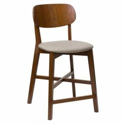 Tabouret De Bar Noyer Et Assise Marron Glacé H65 Cm LUCIA