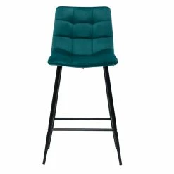 Tabourets De Bar Design En Tissu Velours Gaufré Bleu Pétrole Et Métal H65 Cm (lot De 2) ESCAPE