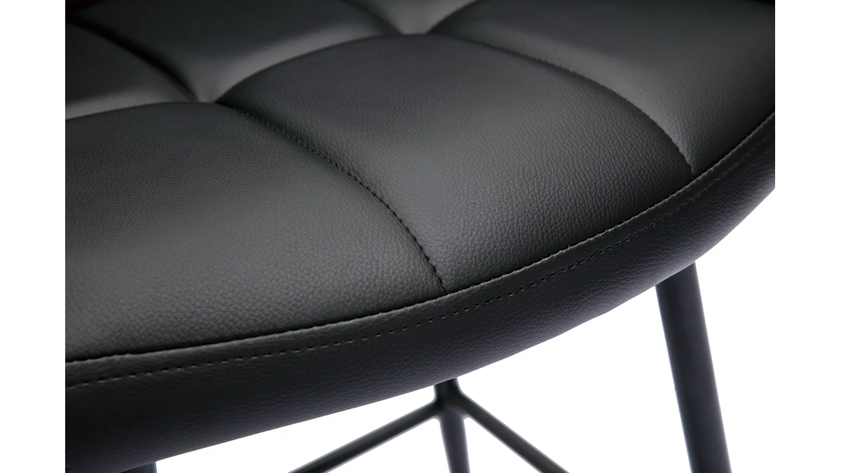 Non sans rappeler la tendance gentlemen’s club, ces chaises de bar au look monochrome cultivent à la fois sobriété et originalité. Tout en finesse, le moderne piètement en métal noir, confère une touche de légèreté au siège qui se démarque par des volumes assumés. Le revêtement en polyuréthane coloris noir apportera sans conteste du cachet et une touche raffinée à votre cuisine ou salle à manger ! Disposés autour d’une table de bar en bois, ces tabourets de bar noirs ne manqueront pas de réchauffer l’ambiance d’un coin repas convivial et accueillant. Si leur style vintage s’intégrera à la perfection dans une ambiance rétro ou dandy chic, ce modèle teinté d’une note factory, trouvera également sa place dans un intérieur à l’inspiration industrielle.