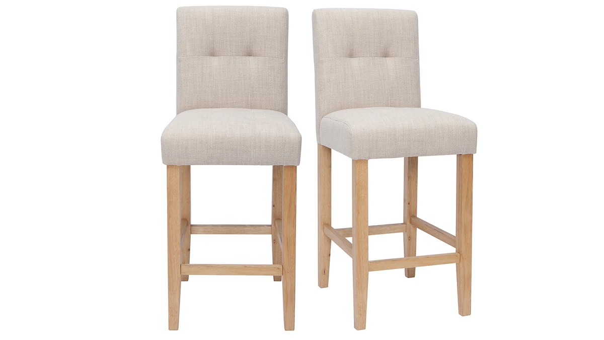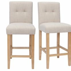 Tabourets De Bar Capitonnés Beige Naturel Et Bois H66 Cm (lot De 2) ESTER