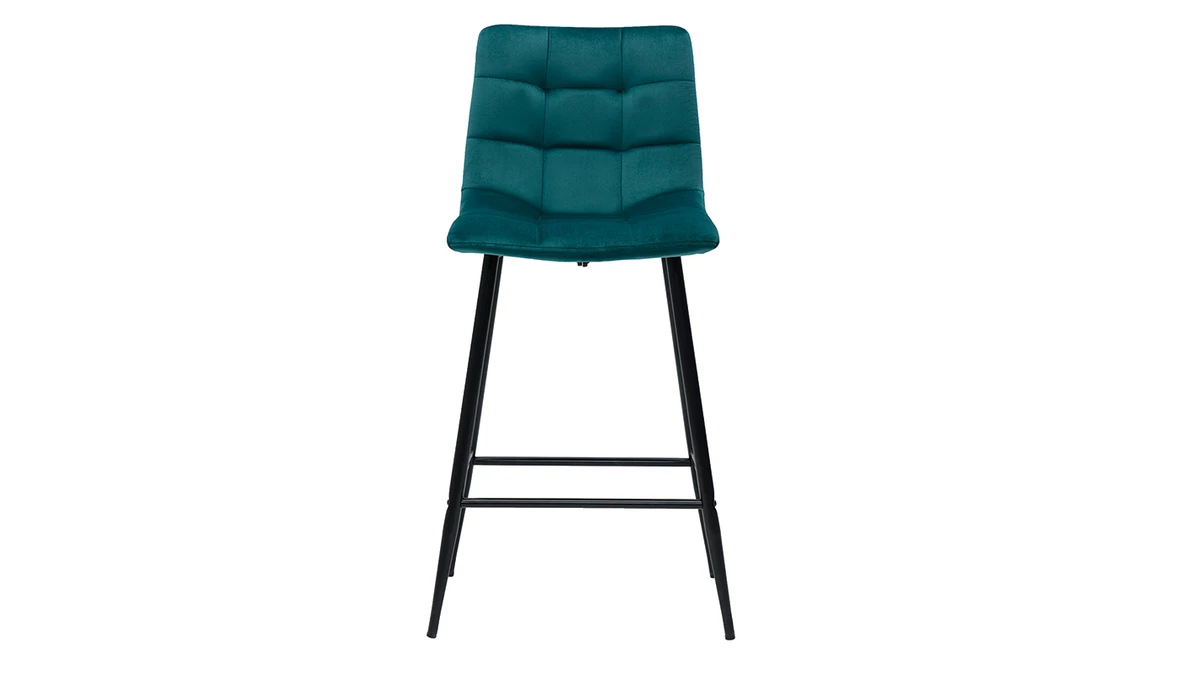 Du café pris sur le pouce au dîner entre amis, en passant par le brunch dominical, les tabourets de bar MAXWELL se montrent à la hauteur de toutes les situations ! Perchés sur des pieds fuselés en métal noir, ces tabourets de bar à la silhouette élancée ne manquent pas d’allure. Leur ligne indémodable, leur élégant capitonnage et leur velours soyeux bleu pétrole (100% polyester) donnent le ton du raffinement ultime.