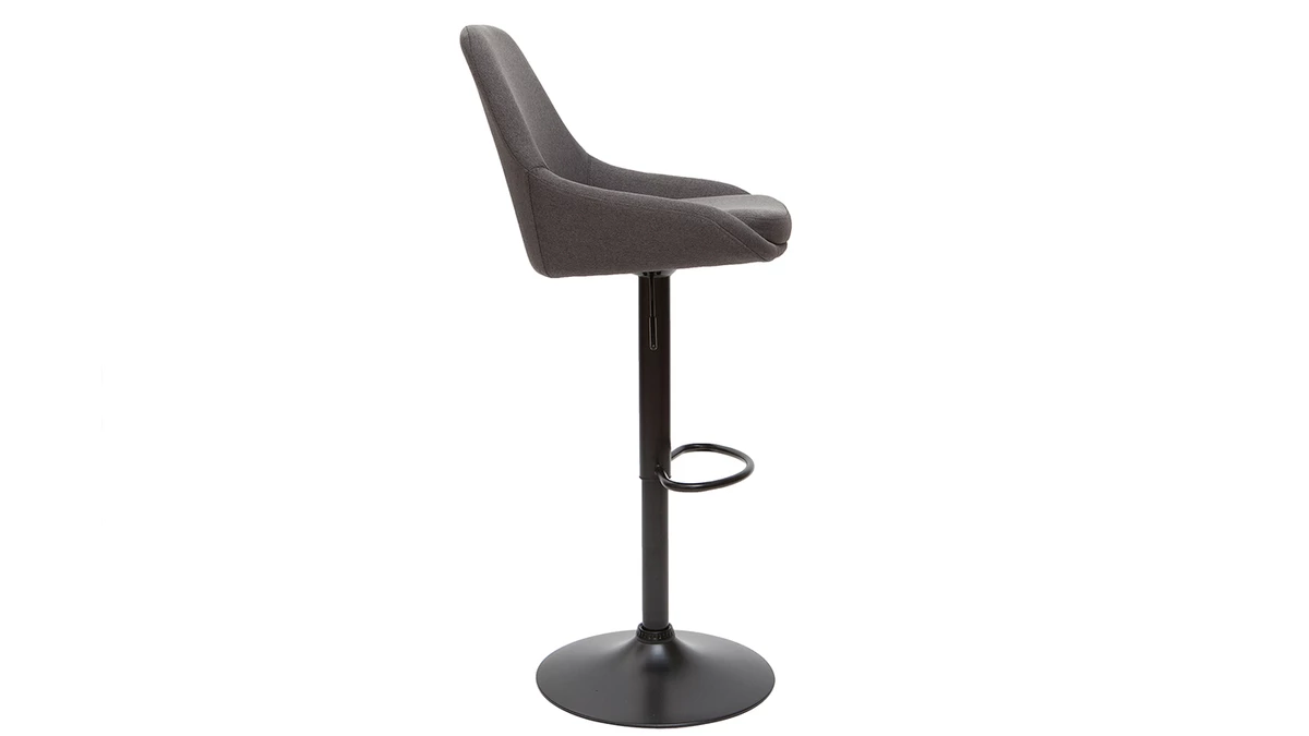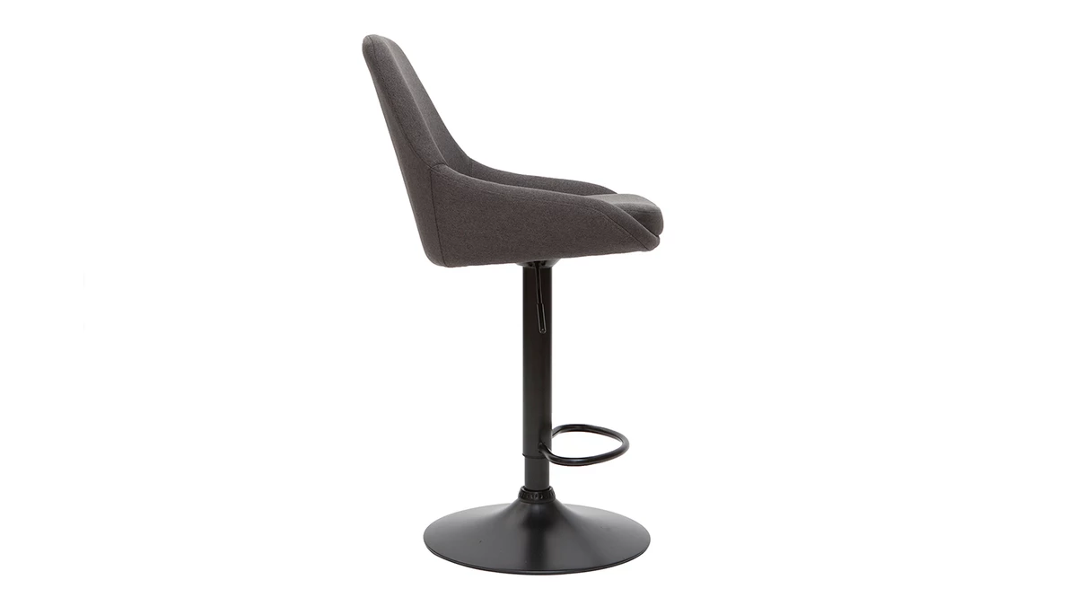 En plus d’être parfaitement fonctionnels, les tabourets de bar HOLO offrent un vrai confort d’assise grâce à leur coque enveloppante. L’assise et le dossier sont rembourrés (densité mousse 24 kg/m3) et entièrement recouverts d’un magnifique tissu gris (100% polyester) ultra doux et très résistant. Le dossier haut (H38 cm) et le repose-pied intégré renforcent un peu plus l’idée de confort.