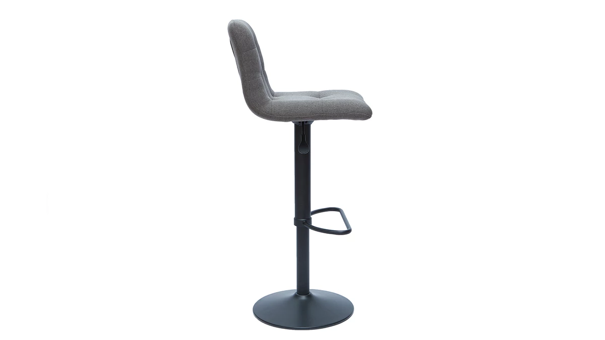 Ces tabourets de bar à l’allure légère et moderne associent un joli tissu gris foncé (100% polyester) à un piètement en métal noir réglable en hauteur. Avec leur élégant capitonnage, ces tabourets de bar s’intègrent facilement dans tous les intérieurs.