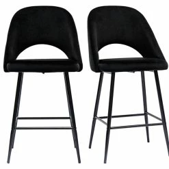 La douceur de leur revêtement, un superbe tissu velours noir, ainsi que leur forme enveloppante laissent toute sa place au confort. Leur dossier haut et courbé (L37 x H38.5 cm) maintient bien la silhouette et leur coque généreusement rembourrée (densité de la mousse 25 kg/m3) garantit un accueil moelleux.