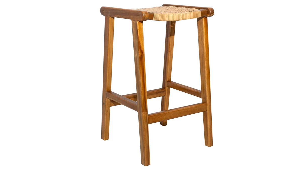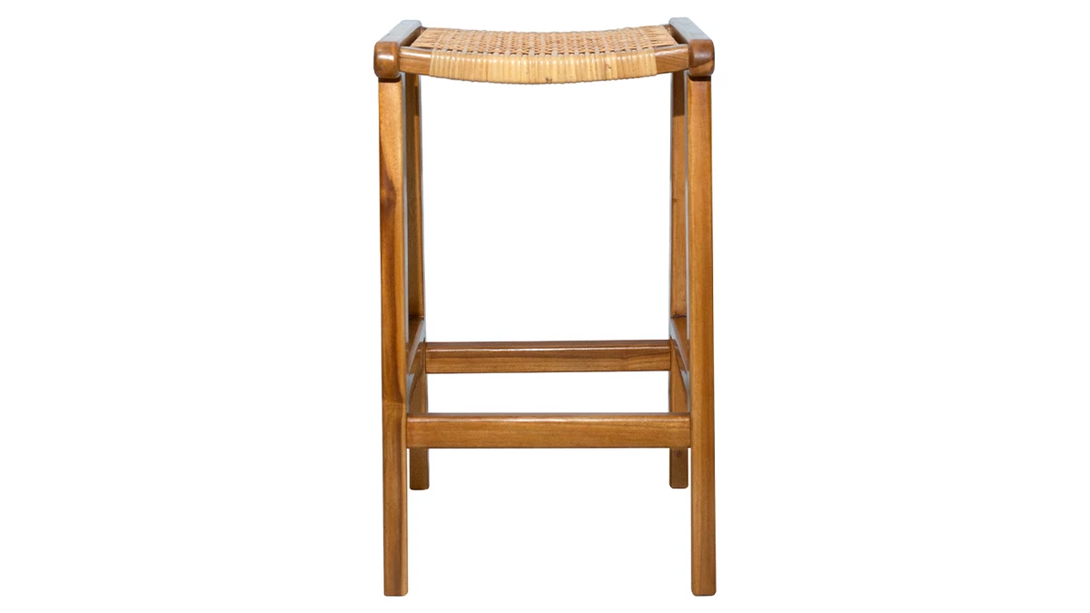 Simplicité et fonctionnalité, caractérisent les silhouettes tout en sobriété de ces tabourets de bar en bois massif. Si l’assise s’habille de la douceur du cannage de rotin, la structure quant à elle, voit ses lignes franches sublimées par le teck massif. Privilégiée pour le mobilier d’extérieur, cette essence de bois exotique, naturellement imputrescible et très résistante, offre de sublimes variations de jaune doré et de brun orangé. Tabouret de bar sans dossier, le modèle GAWA, ajoutera une touche nomade à une déco ressourçante qui évoque des horizons lointains et l’univers du voyage… Fruits d’un savoir-faire artisanal, empreints d’authenticité et de naturel, ces tabourets de bar ethniques camperont avec élégance dans une salle à manger ou une cuisine aux influences multiples.