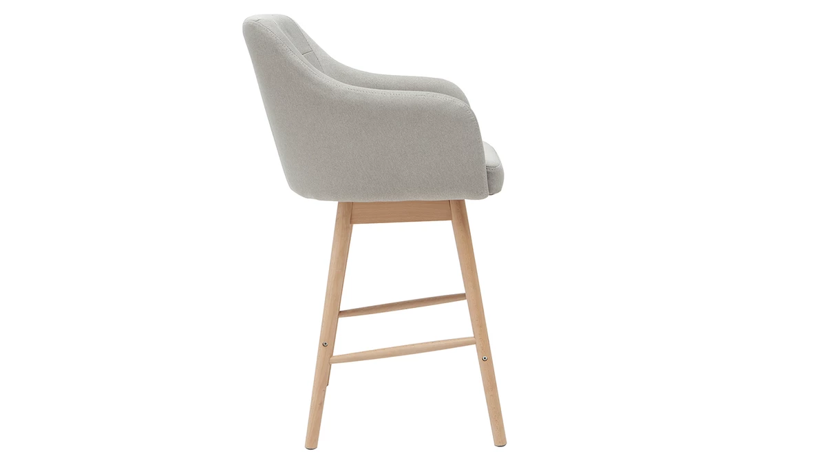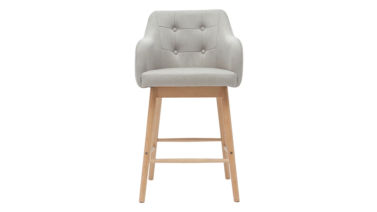 Au plaisir d’être confortablement installé s’ajoute celui d’avoir, dans son séjour ou sa cuisine, des tabourets de bar au design soigné. On apprécie particulièrement le mariage entre une assise capitonnée en tissu et un piètement en bois massif clair. Cette association, que l’on retrouve dans les pièces de mobilier scandinaves, est chaleureuse ; elle a parfaitement sa place dans un espace repas convivial.