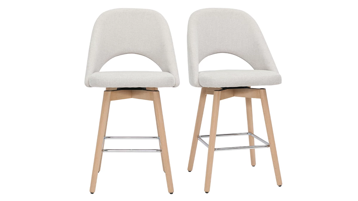 Les tabourets de bar COSETTE réunissent tout ce que l’on aime chez les assises scandinaves. Ils conjuguent à merveille un doux revêtement en tissu effet velours texturé beige à un piétement compas en hévéa massif. Ce superbe jeu de matière est joliment mis en valeur par des lignes rebondies travaillées tout en rondeurs. Délicats et chaleureux, ces tabourets de bar raviront les adeptes de déco cosy façon nordique.