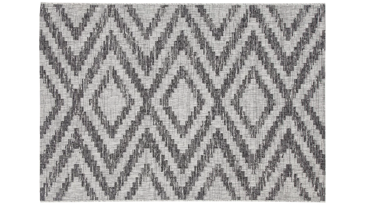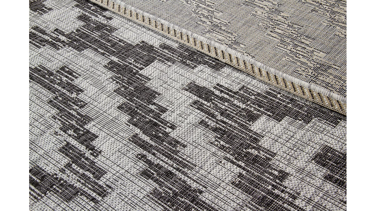 Ce tapis s’installe sur la terrasse pour sublimer l’espace détente extérieur. Il est conçu principalement en polypropylène, un matériau résistant adapté aux balcons et jardins. Avec sa base claire et son motif gris foncé, LUDI se fond facilement dans le décor. Son motif graphique en fait une pièce hypnotique et moderne. C’est un accessoire idéal pour apporter une touche tendance conviviale à un coin repas extérieur ou un salon de jardin.