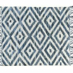 Ce tapis est un accessoire qui marie à merveille un dessin graphique bien visible à des teintes douces et délicates. C’est une pièce unique dont la beauté réside dans ce joli motif losanges bleus et blancs. On aime cette illusion de volume créée par les lignes géométriques. Ses finitions frangées donnent à ce tapis du caractère et de l’originalité. Avec le tapis ACANTE, on s’aménage un intérieur résolument tendance.