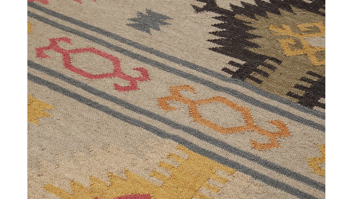 Le tapis kilim SAUK est une véritable invitation au voyage. Tissé à la main, il reprend les motifs traditionnels des tapis d’Orient et leurs incontournables couleurs chatoyantes. Cette belle pièce emprunte d’authencité et au charme unique saura devenir un accessoire incontournable de toute les décorations au style ethnique.
