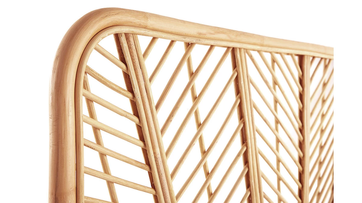 Le motif, inspiré par les nervures des feuilles, trouvera sa place dans une chambre à la décoration naturelle. On aménage son espace nuit avec des matériaux bruts pour un style exotique. La structure en rotin a été travaillée de façon artisanale offrant un rendu authentique plein de charme.
