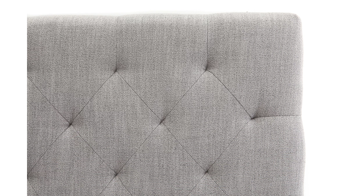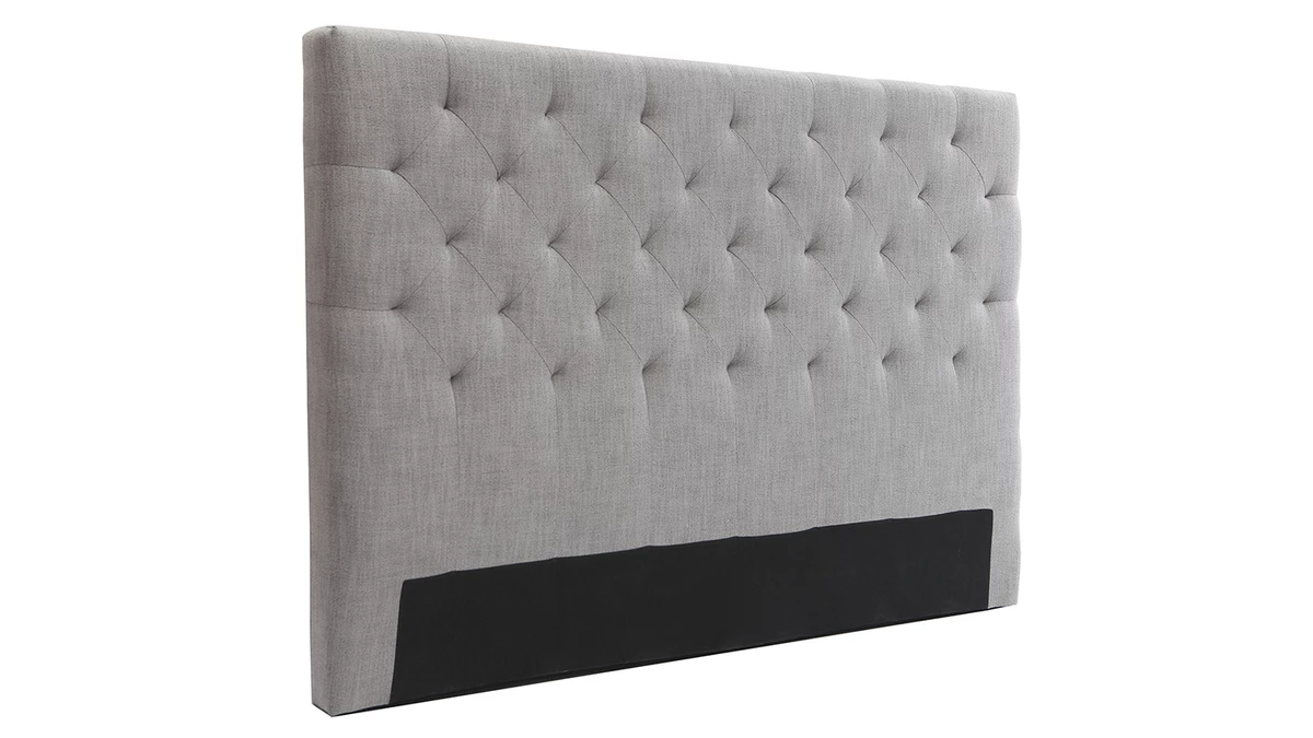Ressourcez-vous dans le plus grand confort avec cette tête de lit gris clair en tissu (100% polyester) au toucher doux et agréable. Avec son élégant capitonnage, elle forme un écrin voluptueux propice à la relaxation. En plus d’apporter beaucoup de cachet à la chambre à coucher, elle sera parfaite pour les longues soirées lecture.